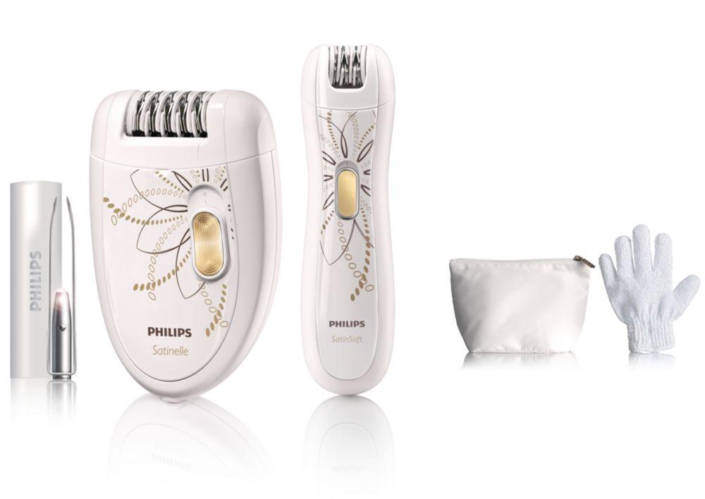 Philips HP6540/00 - Set con depiladora eléctrica de dos velocidades, depiladora eléctrica de precisión y pinzas con luz