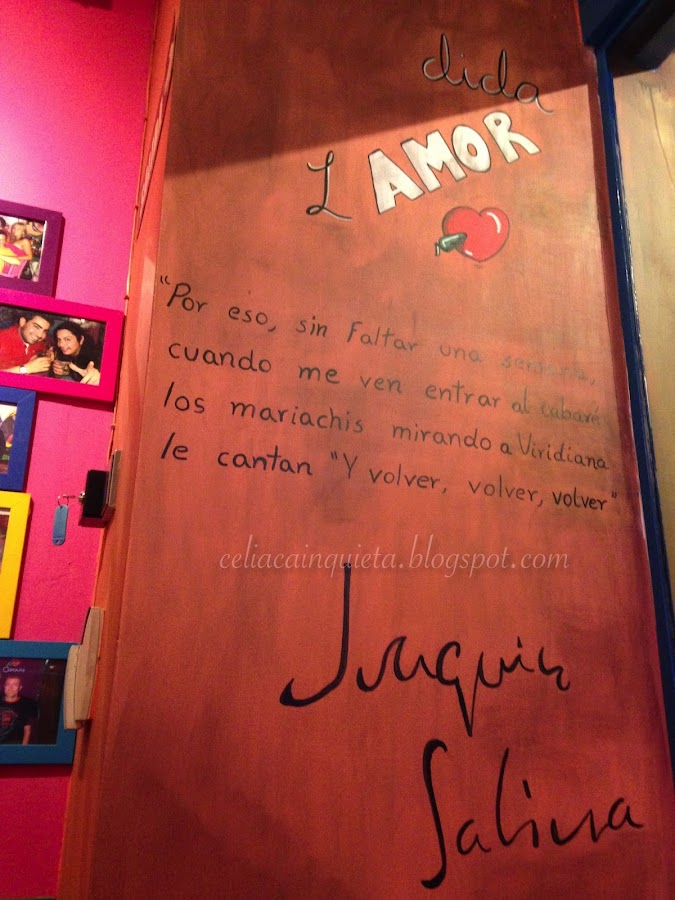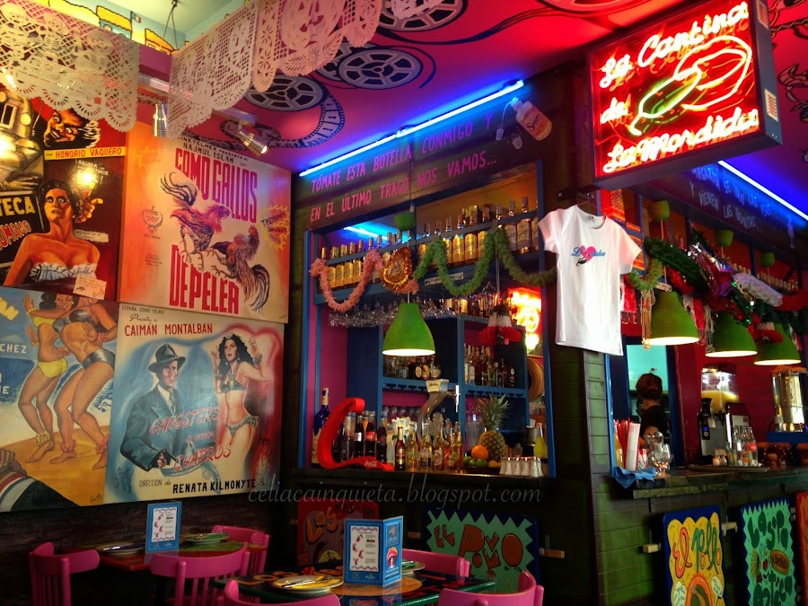 La primera vez que fui a La Mordida me llamo la atención su colorida estética y los murales que adornan sus paredes en los que se inmortalizan numerosos personajes famosos relacionados con México. No se, pero al entrar en uno de estos locales me da un buen rollo que me encanta.