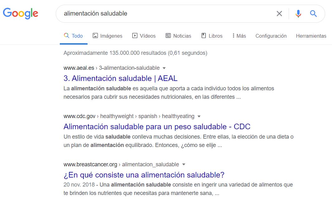 ¿Qué ocurre si buscamos alimentación saludable en Google?: