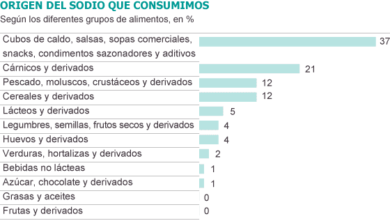Según la Agencia Española de Seguridad Alimentaria y Nutrición (Aesan), el 72% de la sal se ingiere por las comidas preparadas. Es la llamada "sal oculta" porque se encuentra en los alimentos procesados. A veces ni siquiera somos conscientes de ella, pero está ahí. De hecho muchas personas dicen que no toman sal, pero se refieren a la sal añadida con el salero a la comida, no a la sal oculta.