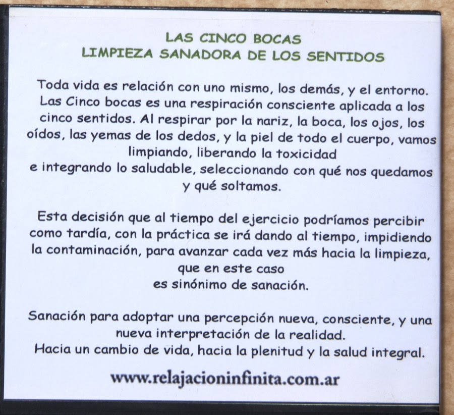 Nota: Texto extraído del e-book Las Cinco Bocas que conjuntamente con el mp3 con el audio de la relajación y las Instrucciones para realizar el ejercicio, se envía a quien lo solicite a través del form. de contacto de mi sitio: www.relajacioninfinita.com.ar
