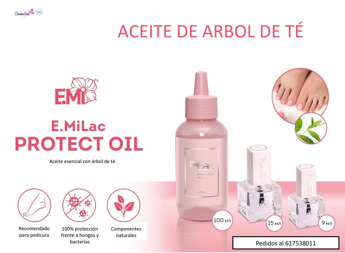 Al cliente se le recomienda poner gotitas de antifungal y realizar un masaje con aceite de árbol de té Protect oil para acelerar la recuperación.