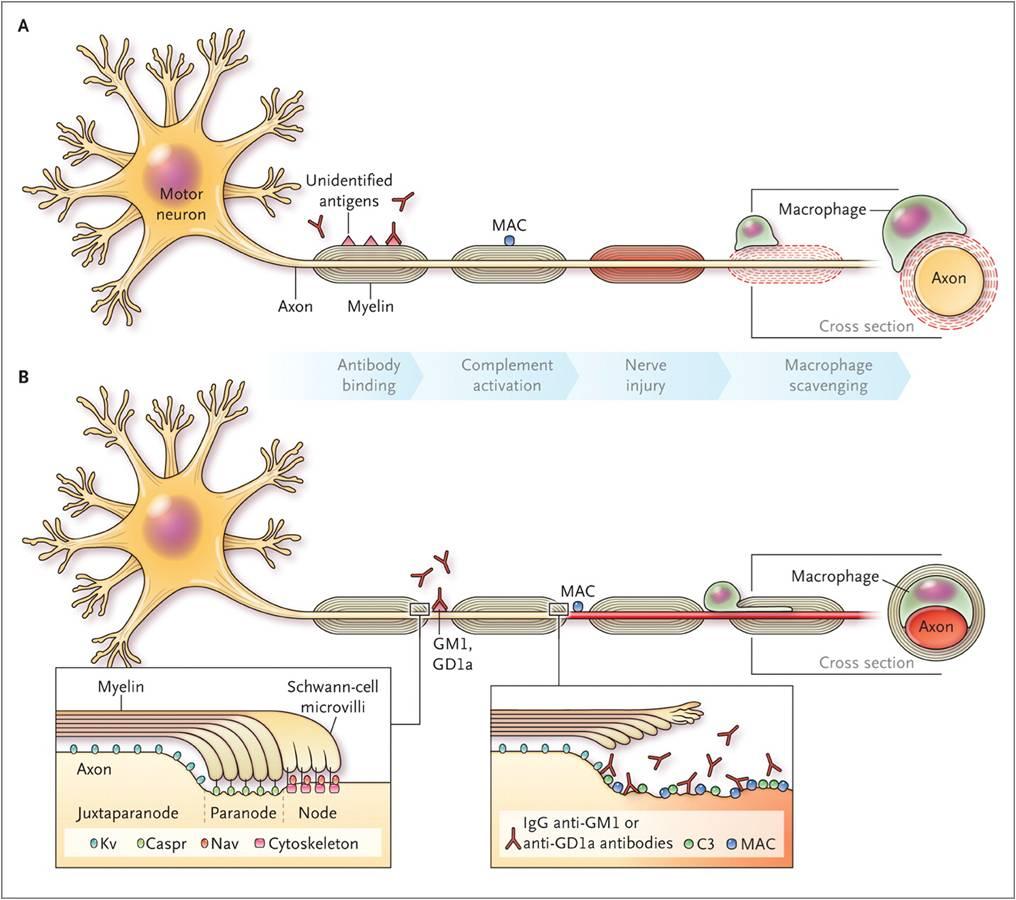 Esta enfermedad, llamada síndrome de Guillain-Barré, ocurre cuando el sistema inmunológico de la persona recibe "instrucciones" de que ataque a los nervios propios del cuerpo y puede conducir a parálisis que dura varias semanas y de ordinario requiere atención intensiva. Se estima que aproximadamente 1 de cada 1,000 casos notificados de campilobacteriosis conducen al síndrome de Guillain-Barré. Hasta 40% de los casos de síndrome de Guillain-Barré en los Estados Unidos pueden haber sido desencadenados por la campilobacteriosis.
