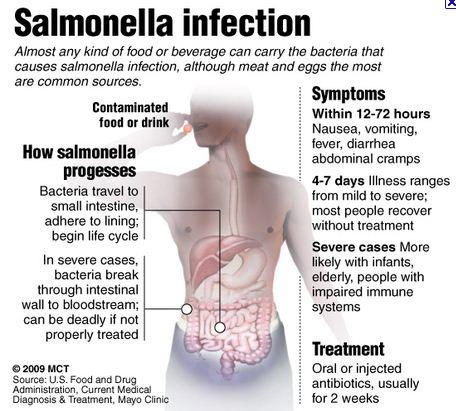 Las salmonelosis son la segunda causa más común de enfermedades transmitidas por alimentos. Es responsable de millones de casos al año y sus orígenes son: huevos crudos y mal cocidos, pollos y carnes mal cocidas, productos lácteos, mariscos, frutas y vegetales.