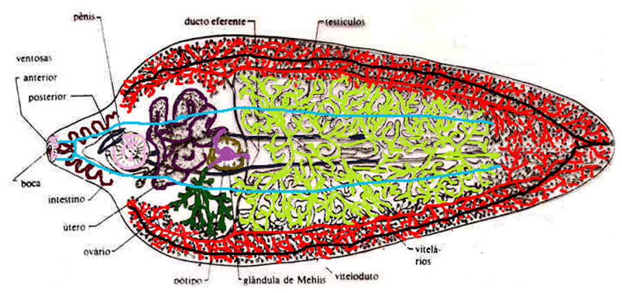 Gusanos insegmentados, de cuerpo foliáceo, que viven parásitos sobre o en el interior de otros animales y poseen un tubo digestivo sin ano, pero ramificado en ciegos. Para agarrarse al huésped poseen dos o más ventosas y a veces ganchos córneos. Casi sin excepción son hermafroditas. El más importante de todos es la duela del hígado (Distomum hepaticum o Fasciola hepática), que en estado adulto vive en el hígado de los carneros y tiene un complicado y curioso desarrollo.