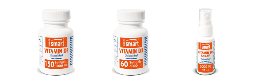 SuperSmart nos presenta la gama de productos Vitamina D3, especialmente desarrollada para contribuir al tono muscular, a la mineralización del esqueleto, a la mejoría de la salud bucodental y al refuerzo del sistema inmunitario.