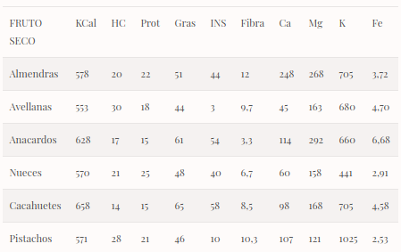 • Proteínas. después de las legumbres, los frutos secos son el alimento vegetal más rico en proteínas. Son proteínas ricas en aminoácidos completos. Se suplementan muy bien con las legumbres y los cereales.