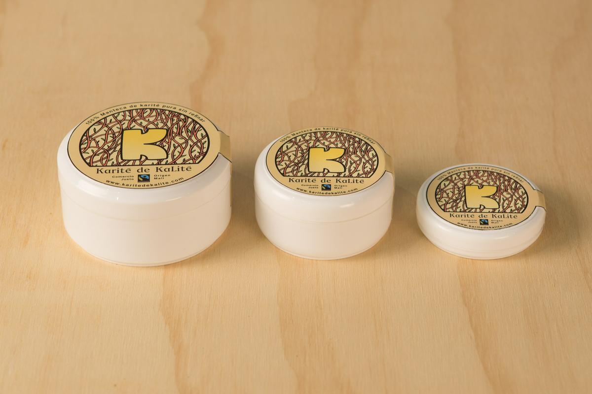Cristina: Sí, como comentaba antes, en mi viaje por África, cuando empecé a investigar sobre la manteca de karité conocí a una cooperativa en Mali, una cooperativa de mujeres exclusivamente, donde lo trabajan y elaboran artesanalmente. El karité, bueno para comentar así, tiene diferentes… según el país donde crezca, tiene diferentes texturas, color …y en concreto esta de Mali fue la que más me gustó por todas sus características. Y además, que fuese de una cooperativa de mujeres que se dedican a ello y que tiene el reconocimiento de la FAIR TRADE, el sello de comercio justo internacional desde hace ya unos años, bastantes años. Entonces fue lo que me impulsó también a trabajar, a colaborar con ellas. Algunos de los ítems del comercio justo es que tienen un horario digno de trabajo, un salario correspondiente a esa jornada laboral, rechazan la explotación infantil y además en esta cooperativa en concreto, se realizan cursos de alfabetización, se realizan edificios… escuelas para personas que no han podido ir de pequeños a la escuela, pues ahora es su momento.