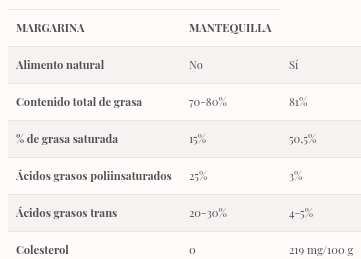 Las diferencias entre la margarina y la mantequilla: