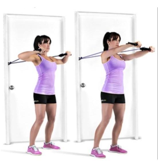 Estas traen un implemento que puedes meter en la puerta al cerrarla para que puedas trabajar el pecho tranquilamente, sino puedes ponerla en una silla y trabajar tu ejercicio.