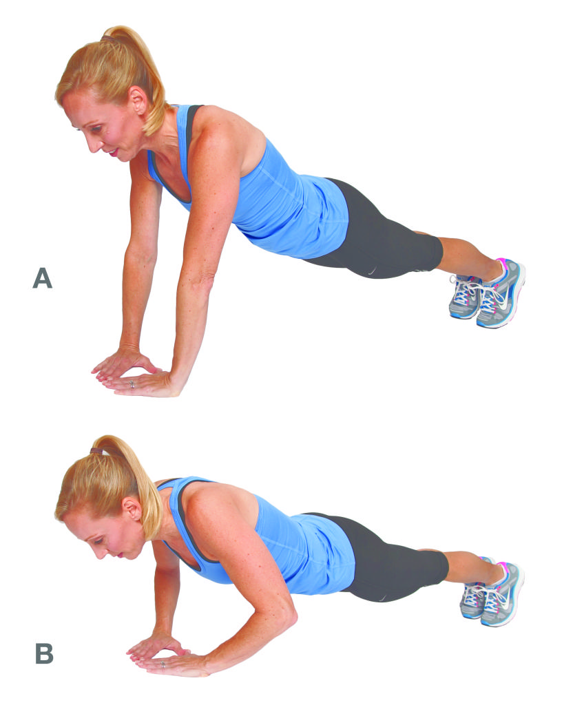 Luego bajas hasta que tus codos rocen el suelo y repites el movimiento.