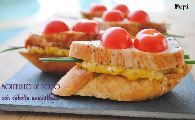 MONTADITOS DE POLLO SOBRE CEBOLLA A LA VAINILLA