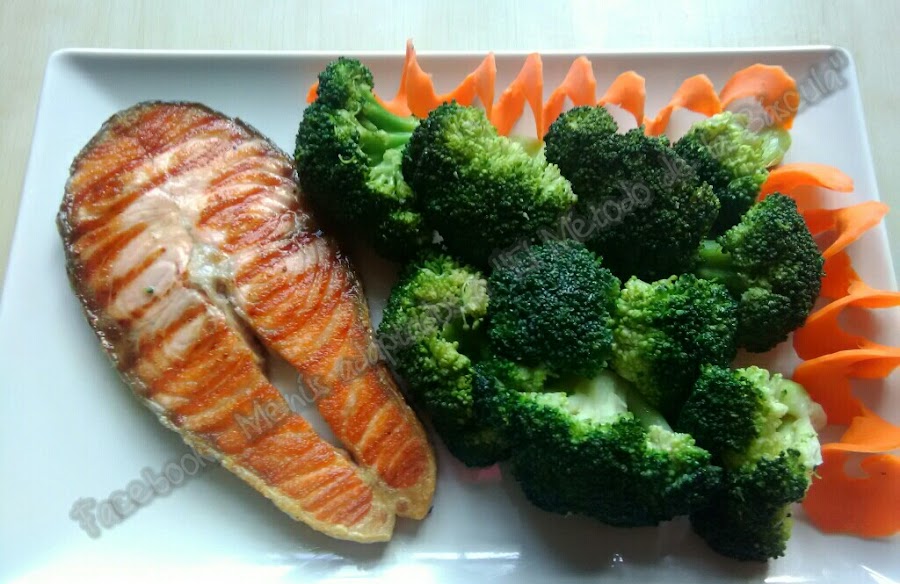 JUEVES, Cena ► Salmón fresco con brócoli y zanahoria