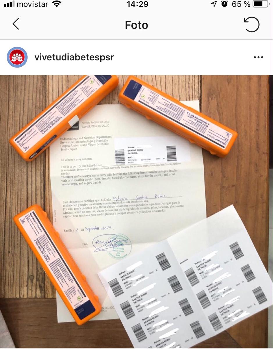 Respecto al informe médico de viaje, lo solicité con diez días de antelación en mi hospital de día. El pasado lunes lo recogí y además del informe en inglés y español, me dieron unas pegatinas (mirad la foto en Instagram @vivetudiabetespsr) para que las pegue en las fotocopias que haga de la carta original. ¿Para qué sirve la carta/informe? Habitualmente nunca lo piden, pero yo recomiendo llevarlo siempre, ya que si nos pasa algo o nos piden justificante de por qué llevamos tanta medicación es un informe oficial de que vivimos con diabetes. Por ejemplo, yo las únicas dos veces que lo he usado fue en NY en el Empire State ya que para subir me dijeron que tenía que dejar todo los líquidos (lo que incluía un zumo que llevaba y las insus) y enseñando mi informe pude subir con todo mi kit y la otra fue en México, donde en Coco Bongo tuve una “pelea” con el encargado porque me prohibía entrar con la insu por si decidía pinchar a alguien (sí… es surrealista) y con mi informe no se pudo negar.