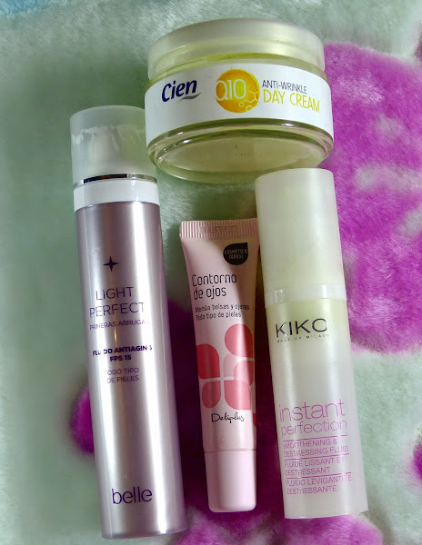 Lo primero que me aplico es este "Fluido antiaging" de belle.El contorno de ojos de Deliplus que no repetiré porque no me hace efecto.
