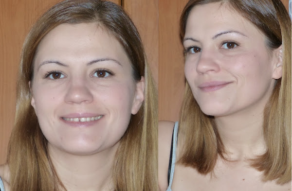 Así vamos quedando con el maquillaje, de momento, faltan los ojos y los labios, pero a veces ya salgo así sin más a la calle, bueno quién dice a la calle dice a trabajar o a dar un paseo, para ir a tirar la basura no me maquillo, jajajaja.
