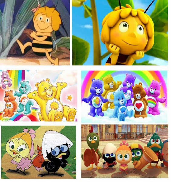 Aunque no os vayáis a creer que esto de las modas boomerang afecta sólo a la ropa. Hace unos días descubrí que mis dos hijas mayores eran fanses de la Abeja Maya, pero no de la Abeja Maya de toda la vida, no, de una Abeja Maya que se ha puesto bótox, ácido hialurónico y una mijita de veneno de serpiente. Y por lo visto, Los Osos Amorosos y Calimero (¡Calimero!) han seguido sus pasos. Juzguen ustedes mismos el antes y el después de estos famosos tras pasar por las manos del Dr. Hollywood: