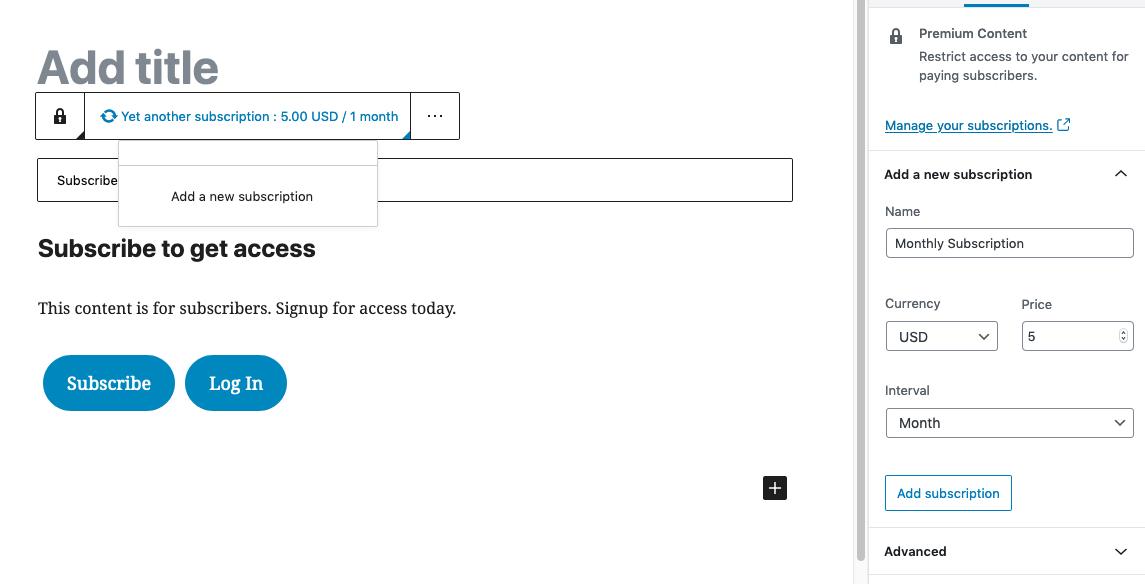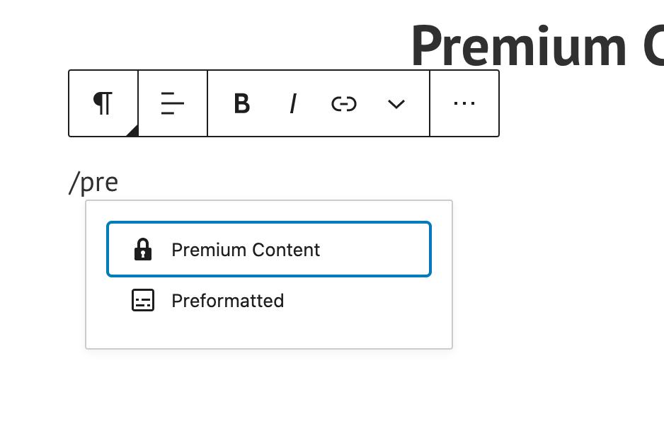 Crea una nueva página o entrada y añade el bloque de contenido Premium