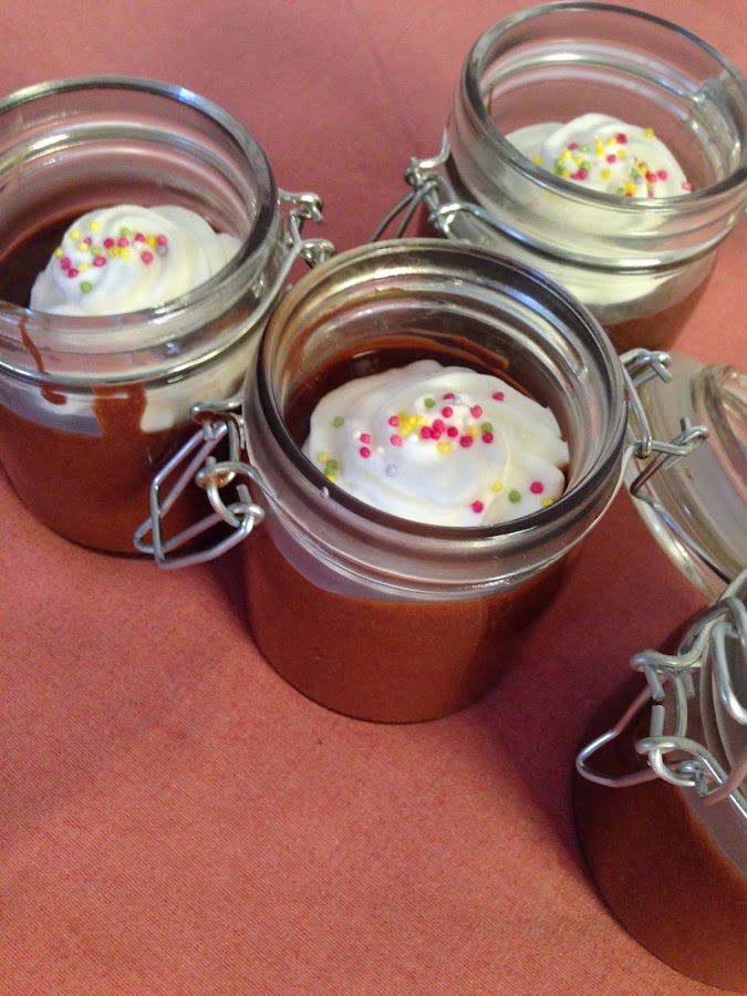 Con viento sur por Santander tenemos 32º (insoportable con esta humedad), así que hoy un postre clásico fresquito. Mousse de chocolate negro. Un toque de nata montada por encima, para adornar y darle otro sabor. La presentación en estos tarros (de los de mermelada) me encanta porque se puede cerrar y transportar .