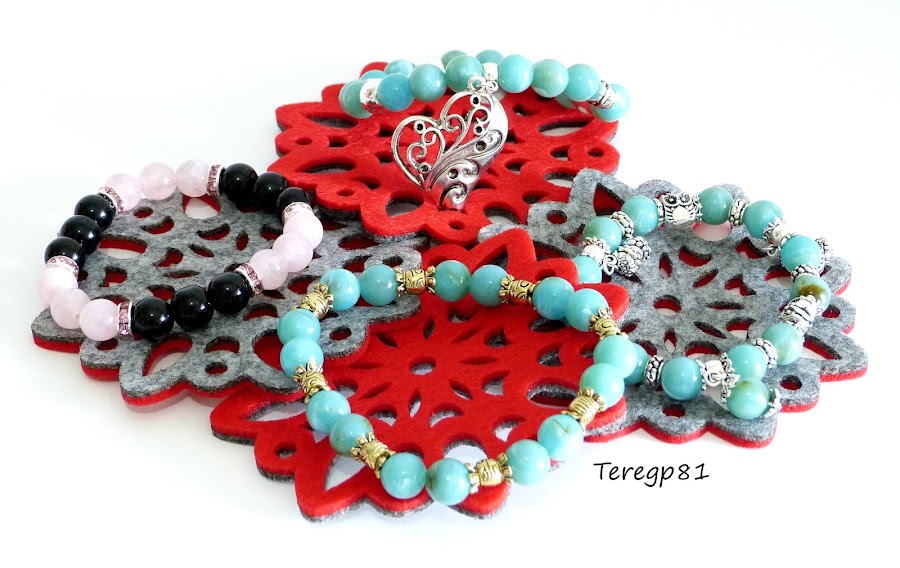 Aquí podréis ver unas pulseras que hice con el material de arriba, son muy fáciles de realizar: