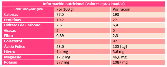 Por último os dejo el perfil nutricional de la receta: