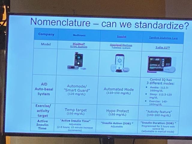 Se presentaron muchos estudios, comparación entre bombas, como la foto que os dejo abajo, de su close loop y los beneficios del sistema para los pacientes y la mejoría en los datos de HbA1c y variabilidad glucémica (como ya os comenté el año pasado y me parece repetitivo poner aquí), pero… ¿qué pasa con la 780G? parece que sigue siendo un gran secreto, porque si no eras médico no te dejaban pasar al carrusel privado de novedades de Medtronic, así que no os puedo comentar mucho más allá de que escuché que no queda tanto para ella. En una de las presentaciones, simplemente se mencionó la 780, en relación a las mejoras que traería vs la actual 670G.