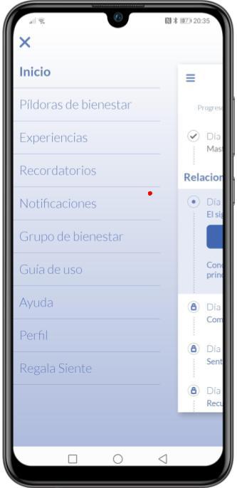 La app te mostrará un punto rojo cuando tengas notificaciones pendientes de leer, ya sean de logros o respuestas a tus formularios de ayudaAYUDA