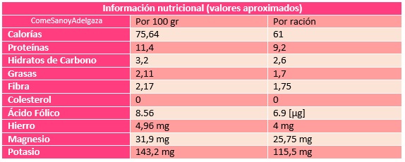 Por último, como siempre, os dejo con el valor nutricional de esta receta, así podéis controlar mejor lo que coméis. Espero que os haya gustado la receta y, si es así, que la compartáis en vuestras redes sociales :) Un abrazo cocinillas!