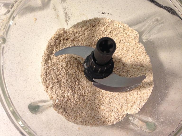Pre calentar el horno. Poner la avena en la procesadora y moler hasta que quede harina.