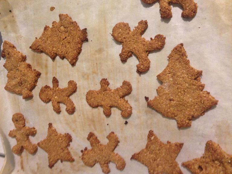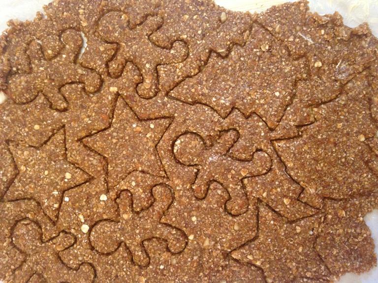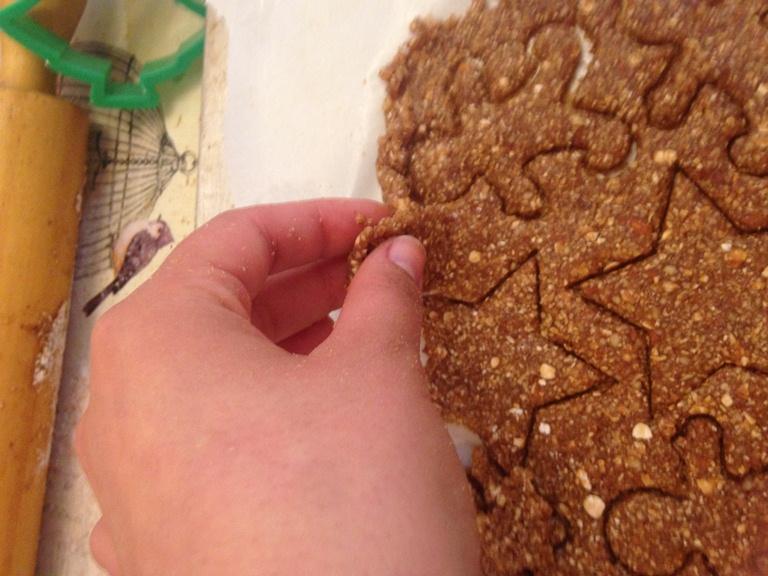 Una vez que no quepan más galletas en la masa, sacar con cuidado los bordes. Con la masa sobrante volver a uslerear y armar más galletas.