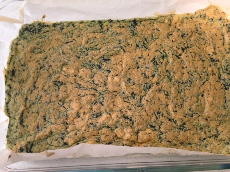 Una vez que las claras este a punto nieve ir agregando lentamente la pasta de espinacas a las claras y mezclar de forma envolvente, suavemente hasta que quede todo junto. La idea es que la mezcla no pierda el aire y así quede más esponjoso.