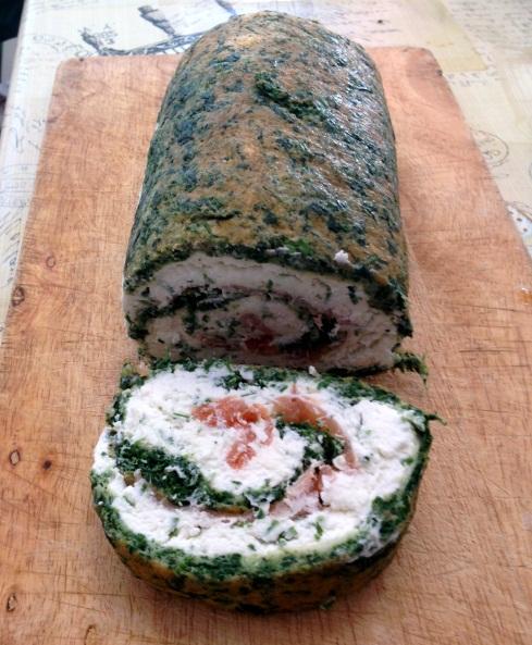 Por último, un novedoso rollo de espinaca, relleno con ricota y salmón ahumado. Es el aperitivo perfecto para la comida de Navidad y aunque se ve muy elaborado de preparar, la verdad no lo es.