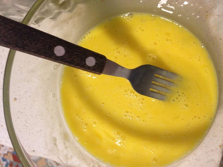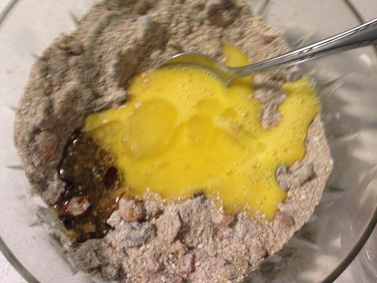 Batir el huevo y agregarlo a la masa junto con el aceite.
