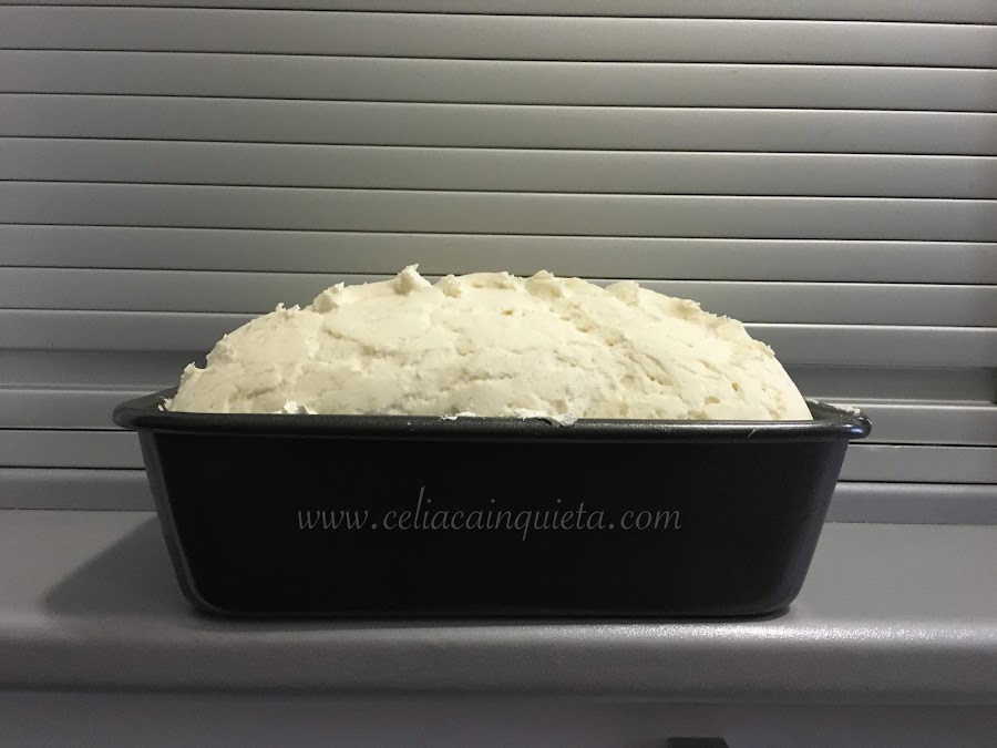 Ponemos la masa en un molde para pan y dejamos leudar 1hora y media a temperatura ambiente.