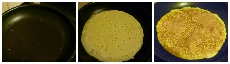 Echar porciones de la mezcla en una sartén previamente engrasada con unas gotitas de aceite.