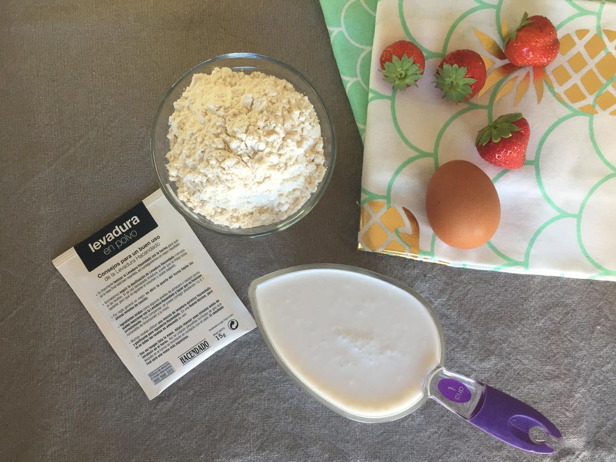 Empieza agregando la harina, la levadura, la leche y el huevo en la batidora.
