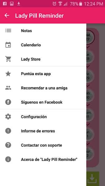 Se llama Lady Pill Reminder, está disponible para Apple y Android. Es gratuita, tiene un poco de publicidad, pero nada que moleste.
