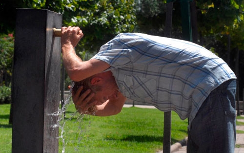 - Agotamiento por el calor: se presenta sobre todo, durante las olas de calor, especialmente cuando no hay viento y la humedad es alta. Afecta principalmente a ancianos y a sujetos no aclimatados. La temperatura interna es normal, o tan sólo sufre un discreto incremento. Las manifestaciones principales son: sed intensa, cansancio, hipotensión e incluso síncope.