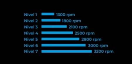 Otra cosa que sorprende, y que la hace única en el mercado, es su potencia ya que llega hasta los 3200 rpm, pero divididas hasta en 7 velocidades puesto que no es lo mismo trabajar un músculo grande como puede ser un cuádriceps que un músculo pequeño como puede ser un bíceps. En la primera velocidad alcanzamos solo 1300 rpm y vamos aumentando progresivamente hasta llegar a 3200 rpm de la séptima velocidad.