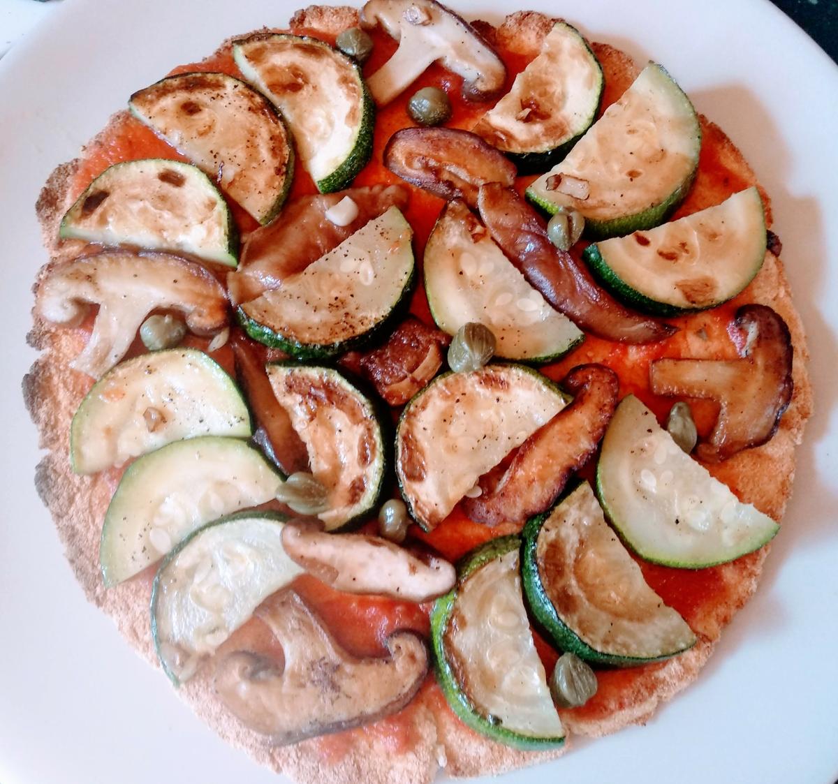 Para esta pizza he utilizado los siguientes «toppings»:rodajas de calabacín