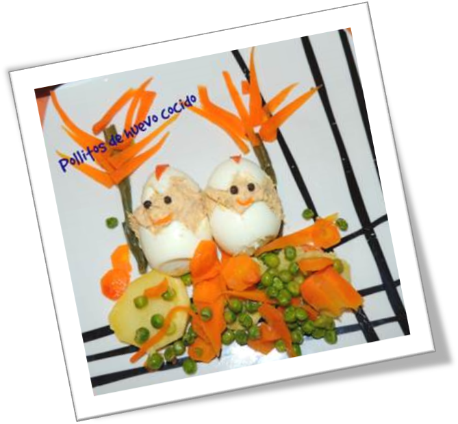 4. Por último elaboramos los huevos. Cuando estén fríos retiramos la cáscara. Con ayuda de un cuchillo cortamos en triángulos para hacer los picos. Separamos las yemas amarillas y las añadimos a un bol en el que habremos puesto previamente el atún y la mahonesa.
