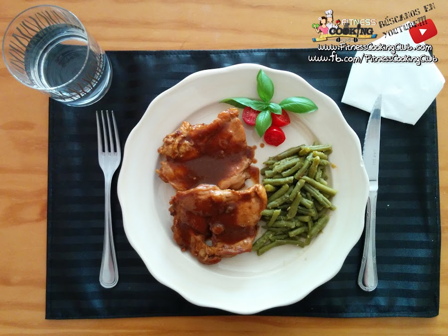 La verdad es que aunque os pueda resultar super extraño cocinar con coca-cola (light en nuestro caso, por supuesto!), el resultado es estupendo. No se necesita NADA de aceite tampoco para este plato y el sabor es excelente. Os quedará un pollo muy jugoso y un sabor dulzón muy característico. Berna chef dice que se inspiró en los Simpsons para esta receta (no sé si os acordaréis del capítulo en el que preparan costillas a la barbacoa...). Y así salió esta receta. En un principio por innovar hace ya unos años, y ahora como un plato estrella en nuestra cocina. Se prepara rápido y queda buenísimo. Seguro que tenéis por casa refresco de cola light y algo de pollo. ¿Por qué no probáis a hacerla? Para acompañar hemos preparado las judías sabrosonas. Lo de sabrosonas ya lo sabréis cuando os las comáis... porque no tienen nada de especial y están muy buenas! Rápidas de hacer y con el vinagre de arroz (o con cualquier otro que uséis en casa) quedan riquísimas. No olvidéis que podéis ver el vídeo con toda la explicación de la receta y que podéis también dejarnos vuestros comentarios y decid lo que queráis al respecto :) Eso siempre!! Y recordad que podéis ver el resto de vídeos y suscribiros al canal de Youtube :) Gracias por leernos Fitniss!!!