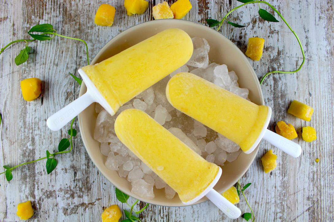 Refrescantes y saludables polos de mango y yogur sin lactosa y bajos en grasa
