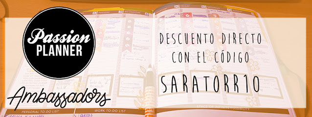 OJO! Si quieres comprar cualquier producto de la tienda de Passion Planner, puedes usar mi código de afiliada: SARATORR10 y obtendrás un 10% de descuento -o más si hay ofertas temporales- en tu compra.