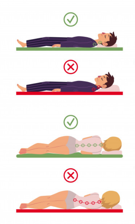 Como ves, dormir boca abajo es un error ya que te obliga a realizar una torsión de cuello que suele derivar en tortícolis y problemas en la zona cervical. ¿Te imaginas qué pasaría si estuvieras siete horas al día con el cuello girado hacia un lado? Esto es lo que hacemos al dormir boca abajo. ¡Evítalo a toda costa! Por el contrario, lo que sí tienes que hacer es mantener la espalda bien alineada.