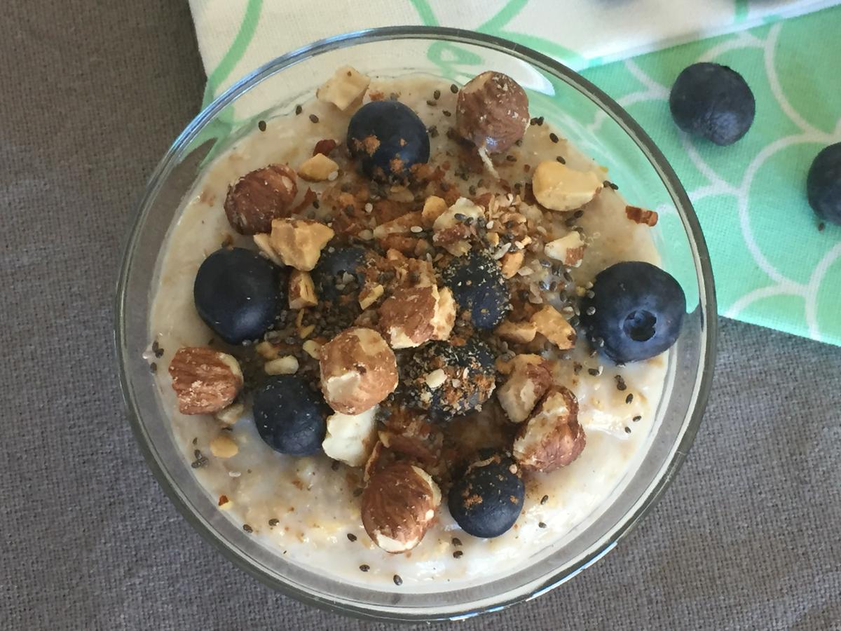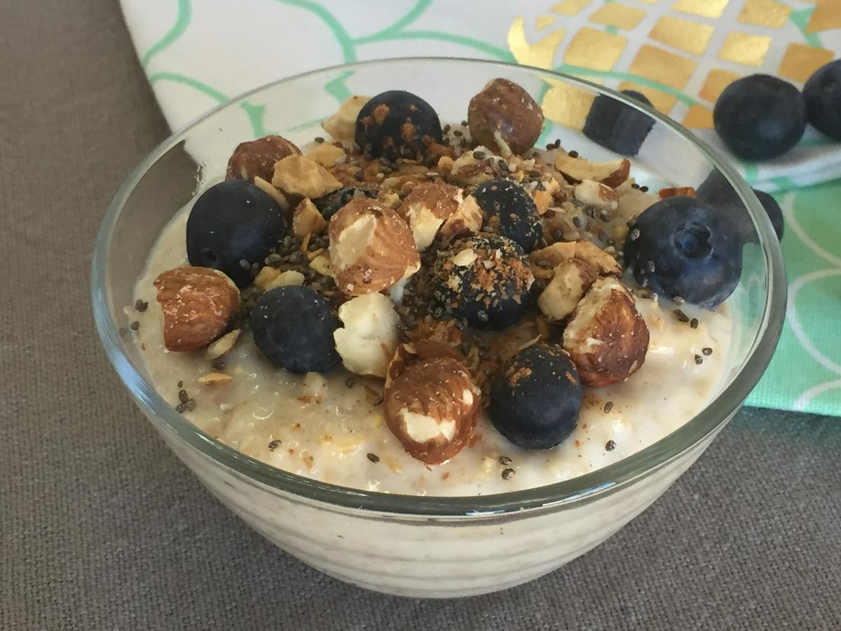 Porridge con arándanos, frutos secos y semillas de chía