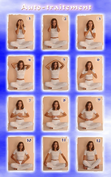 Posiciones para realizarse un autotratamiento de reiki y para realizar duran el periodo de 21 días tras la iniciación