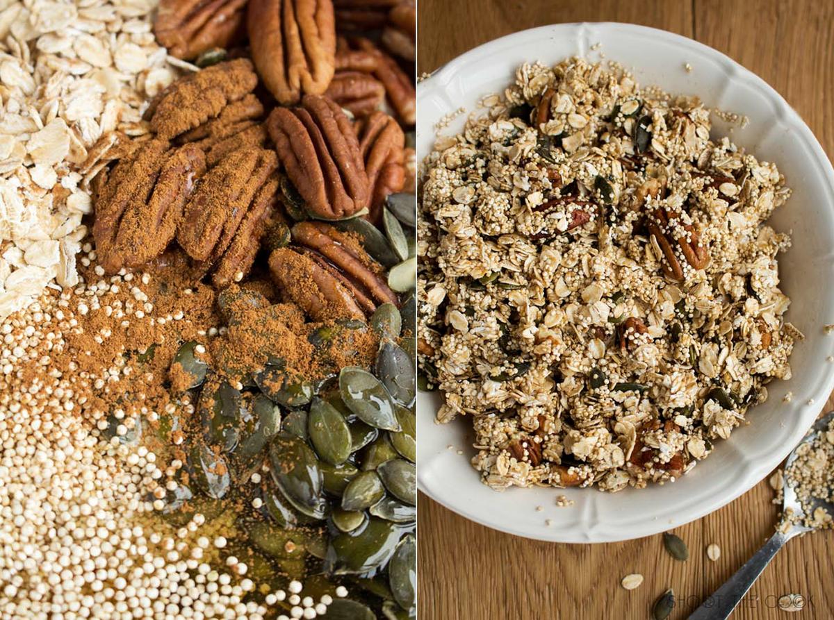 Granola crujiente de quinoa y pecanas, otra deliciosa receta de granola casera para que crujan vuestros desayunos.