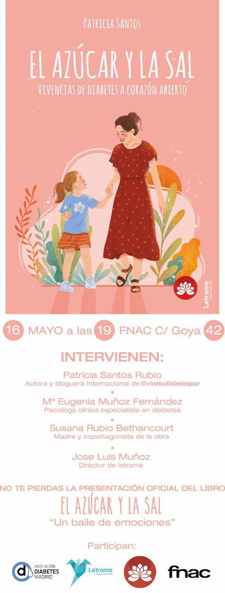 Lo mejor de todo es que no estaré sola. Durante la presentación me acompañará mi madre, como coprotagonista de la historia, pero también Mariu, psicóloga clínica experta en diabetes y persona con diabetes desde hace más de 40 años.
