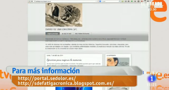Sin embargo y tras el agradecimiento inmenso que un programa de tanta relevancia decida que este humilde Blog sea referencia de la enfermedad y ayuda para enfermos, debo decir con tristeza que casi siempre el tratamiento que se hace a estas enfermedades tanto al Síndrome de Fatiga Crónica como a la Fibromialgia, no hace justicia a la gravedad que acompaña a esta patología, sus consecuencias y el desamparo al que sigue estando sometido el paciente.